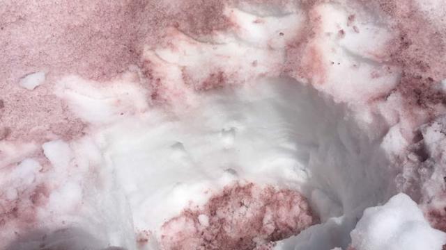 Tuyết trắng bị nhuộm hồng vì tảo nở hoa.
