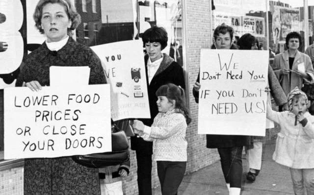 Các bà nội trợ Mỹ biểu tình vì giá cả thực phẩm leo thang quá cao năm 1966 - Ảnh: WSJ