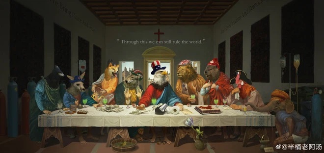Theo Thời báo Hoàn Cầu, ảnh biếm họa có tên là "G7 cuối cùng" do tác giả Bantonglaoatang đăng tải trên mạng Weibo hôm thứ Bảy, 12/6, được dựa trên bức danh tác "Bữa tiệc cuối cùng" của Leonardo da Vinci.