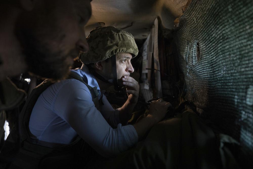Tổng thống Ukraine Volodymyr Zelenskyy thăm tiền tuyến ở miền Đông Ukraine, nơi xảy ra xung đột giữa quân đội chính phủ và lực lượng ly khai hồi tháng 5. Ảnh: AP
