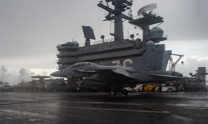 Tiêm kích F/A-18F hạ cánh xuống tàu sân bay USS Ronald Reagan tại Biển Đông ngày 14/6. Ảnh: US Navy.