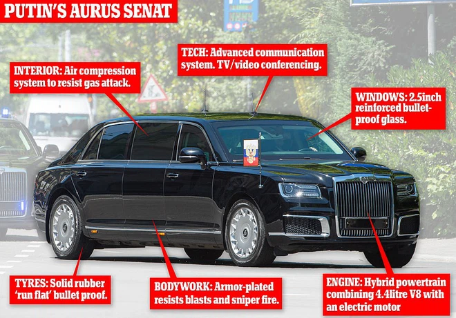 Hai nhà lãnh đạo Nga và Mỹ đều ngồi trong hai chiếc limousine chống đạn, chống chịu được bom và được trang bị nhiều tính năng tuyệt mật, theo Daily Mail.