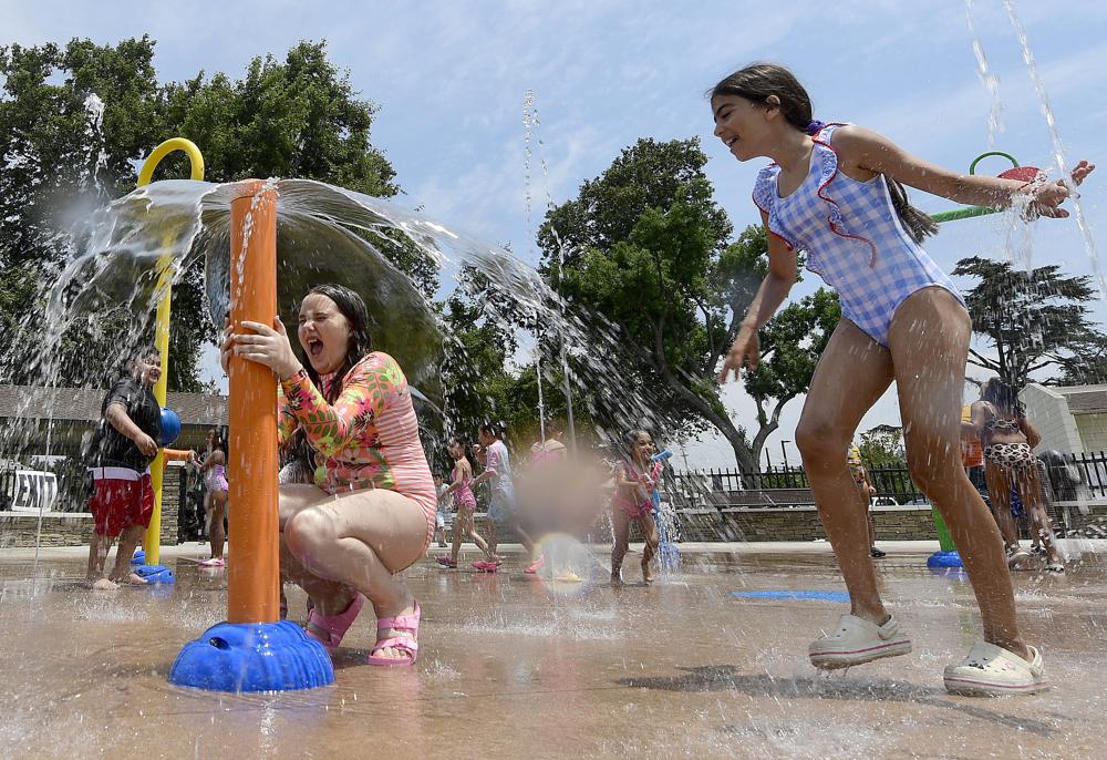 Trẻ em chơi đùa dưới đài phun nước tại Công viên Monte Vista ở Chino, California. Ảnh: AP