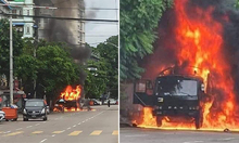 Video đăng trên mạng xã hội cho thấy một xe tải quân sự bốc cháy dữ dội sau vụ nổ xảy ra ngày 18/6 gần văn phòng của đảng Đoàn kết và Phát triển (USDP) ở thị trấn Tamwe thuộc Yangon, thành phố lớn nhất Myanmar. Lực lượng cứu hộ Myanmar sau đó dập tắt đám cháy.