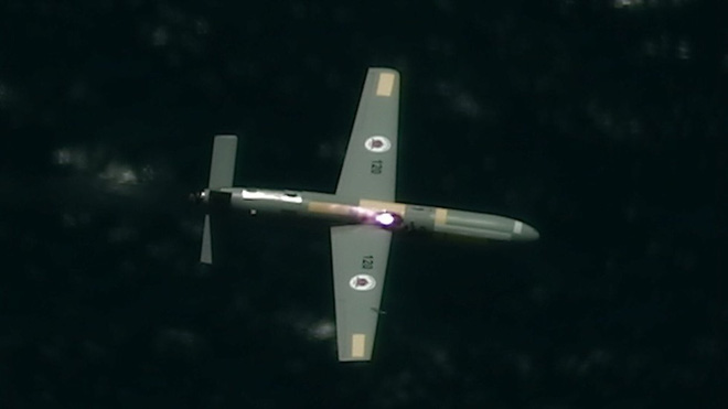 Một máy bay không người lái bị vũ khí laser của Israel tiêu diệt trong cuộc thử nghiệm trên Biển Địa Trung Hải. Ảnh: IDF