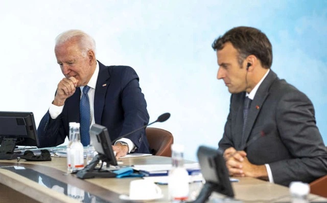 Tổng thống Mỹ Joe Biden và Tổng thống Pháp Emmanuel Macron. Ảnh: Washington Examiner
