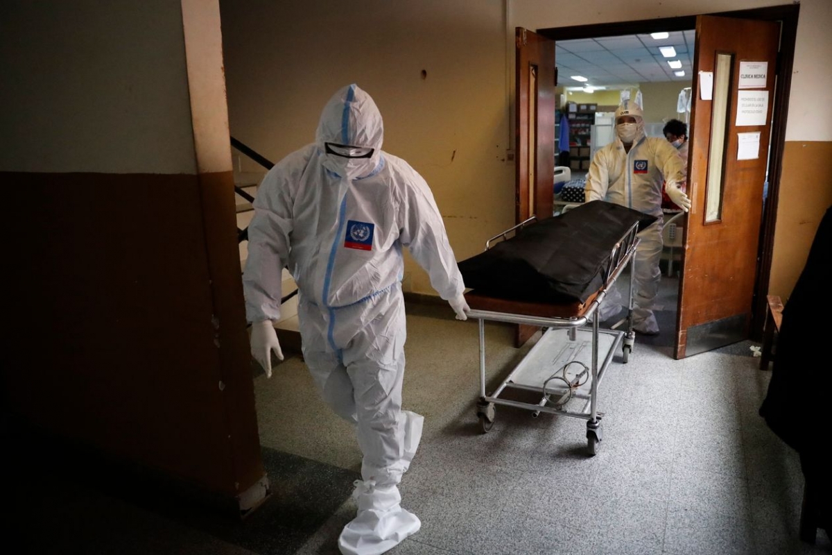 Một bệnh nhân tử vong do Covid-19 được đưa ra khỏi giường bệnh ở San Lorenzo, Paraguay, nơi hiện có tỷ lệ tử vong hàng ngày do dịch bệnh cao nhất thế giới. Ảnh: AP