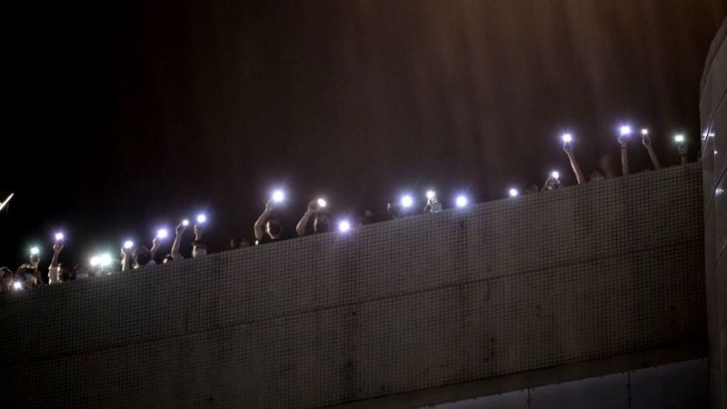 Họ dùng ánh đèn từ điện thoại di động để tỏ ý đoàn kết và hô to những khẩu hiệu ủng hộ như "hãy thêm dầu", một lời cổ vũ phổ biến tại Hong Kong mà đôi khi có thể có nghĩa là "hãy làm điều đó" hoặc "đừng từ bỏ".