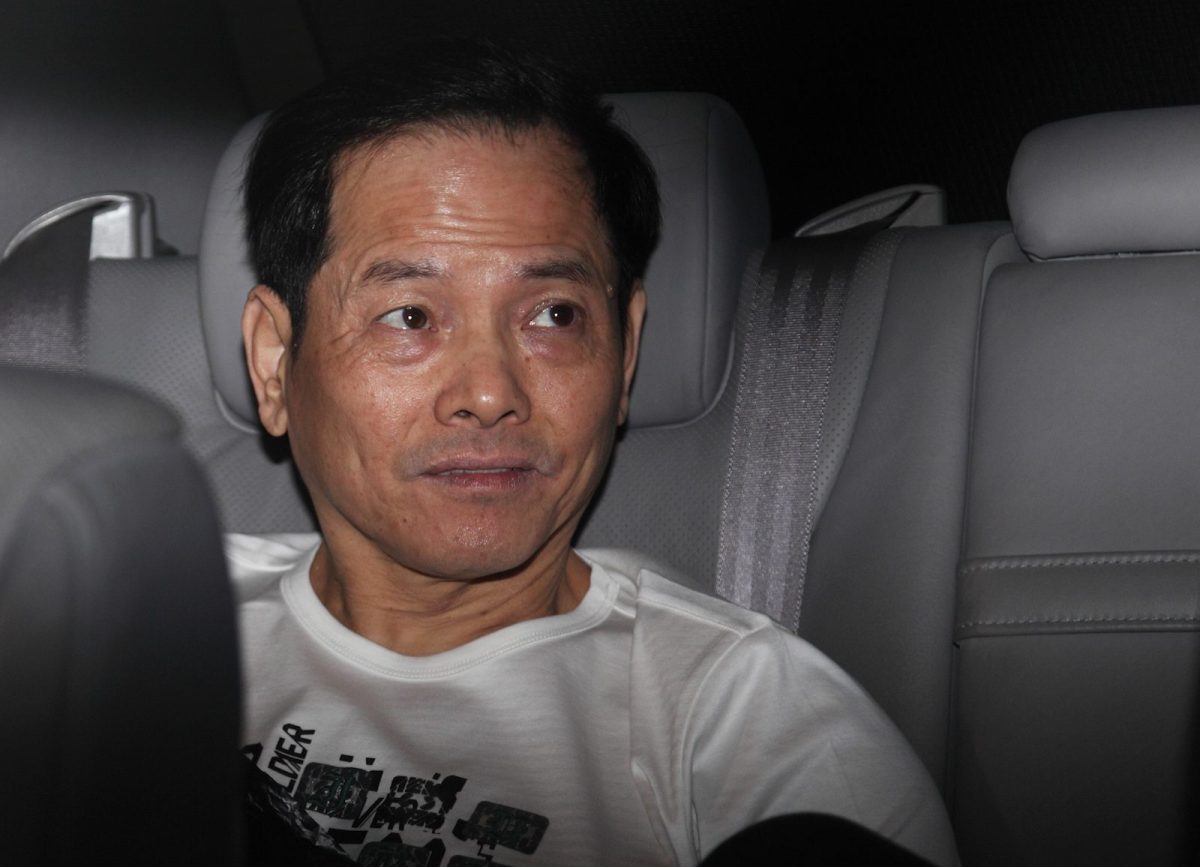 Doãn Quốc Câu ngồi trên xe sau khi ra tù năm 2012.