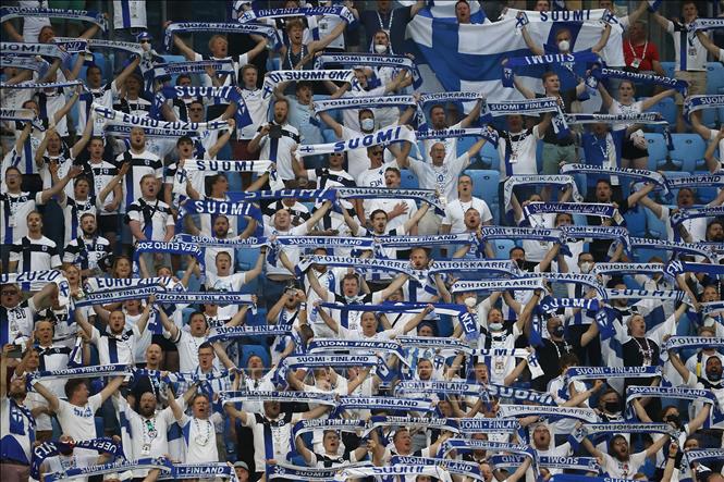 Cổ động viên Phần Lan cổ vũ đội nhà trong trận đấu lượt cuối bảng B gặp Bỉ. Ảnh: AFP/TTXVN