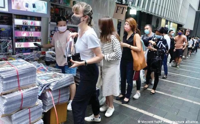 Người dân Hong Kong xếp hàng mua số cuối cùng của Apple Daily ngày 24/6 Ảnh: AP
