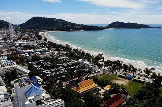 Bãi biển ở Patong, Phuket vắng bóng người vì Covid-19. Ảnh: AFP
