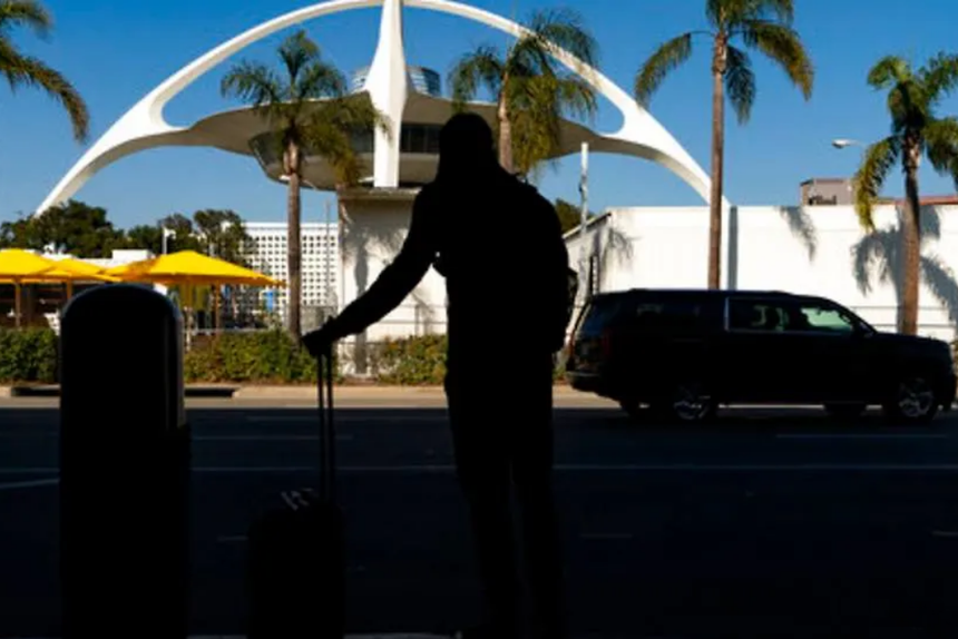 Một du khách chờ xe taxi tại sân bay Los Angeles. Ảnh: AP.