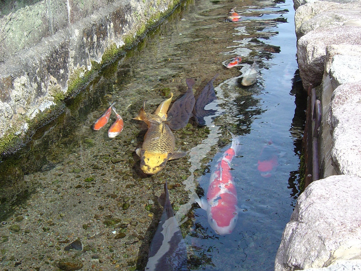 Kênh dẫn nước thả cá koi: Đến thành phố Shimabara, bạn sẽ thấy kênh dẫn nước trong vắt thả đầy cá koi, một loài cá cảnh đắt đỏ. Điều này bắt nguồn từ năm 1792, khi hoạt động của núi lửa Unzen khiến nước suối chảy qua nơi là thành phố ngày nay. Nước sạch đến mức vào năm 1978, chính quyền quyết định thả cá koi xuống kênh dẫn nước dài 100 m. Đây là loài cá chỉ có thể sống trong nước tinh khiết, chứng tỏ độ sạch của nước tại khu vực này. Ảnh: Kyushu&Tokyo.