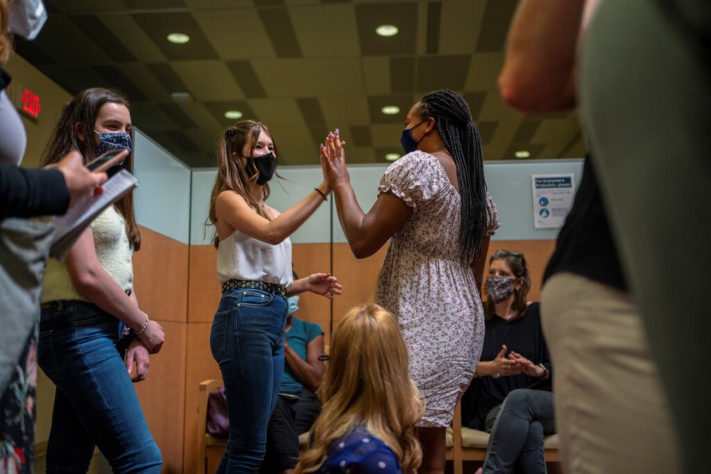 Nhiều thanh thiếu niên muốn được tiêm để sớm được ra đường vui chơi trở lại. Ảnh: Kathleen Flynn/Reuters.