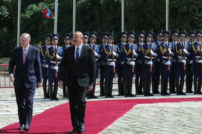 Ông Erdogan cũng phô trương quan hệ thân thiết với người đồng cấp Aliyev. Ankara tận dụng quan hệ song phương với Baku như một bàn đạp nhằm mở rộng tầm ảnh hưởng đến các nước khác trong vùng ngữ hệ Turk như Kazakhstan, Kyrgyzstan, Uzbekistan, và Turkmenistan.