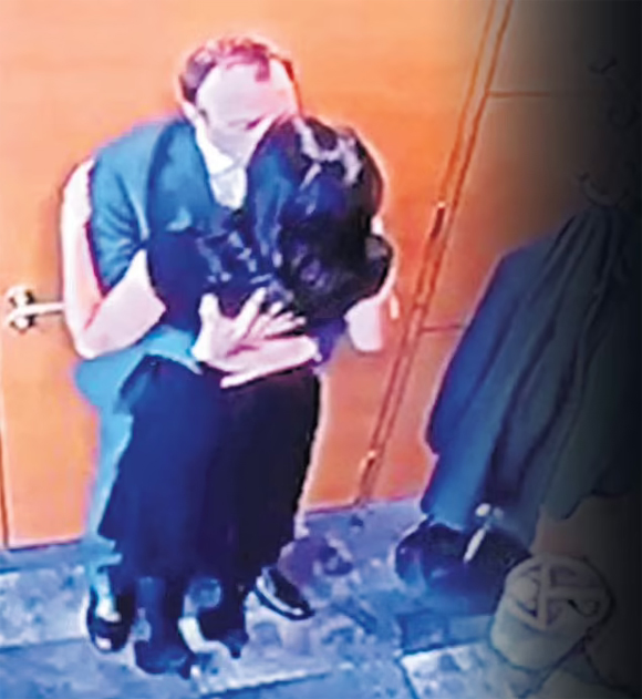 Ông Hancock ôm hôn Gina Coladangelo ở toà nhà văn phòng của Bộ Y tế ở London. Ảnh: The Sun.
