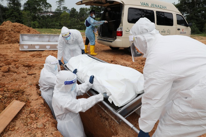 Thi thể nạn nhân Covid-19 được chôn cất tại nghĩa trang ở Petaling Jaya, Malaysia (Ảnh: Reuters).