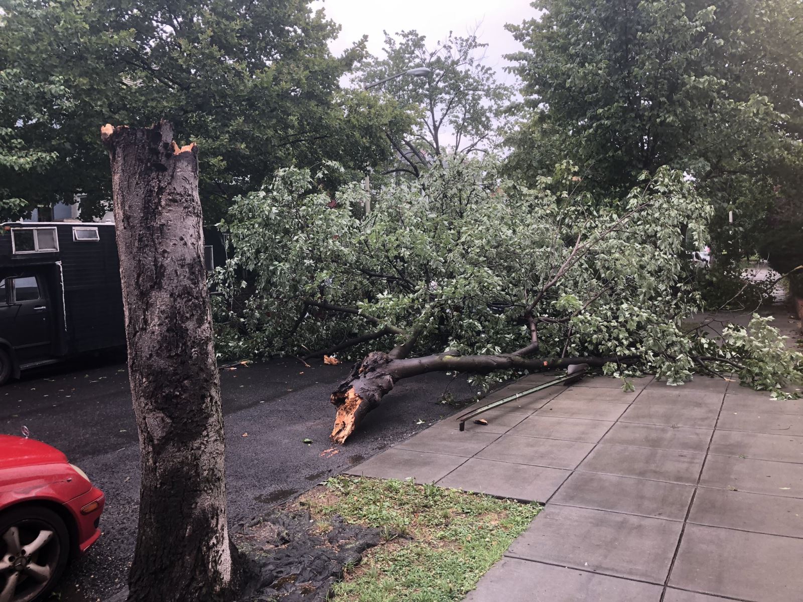Trận bão đã quật ngã hàng chục cây xanh dọc đường đi bắt đầu từ Falls Church, rồi đi qua Arlington, công viên National Mall, đông nam Washington, Capitol Heights ở Maryland. Thiệt hại nặng nhất xảy ra ở Arlington.
