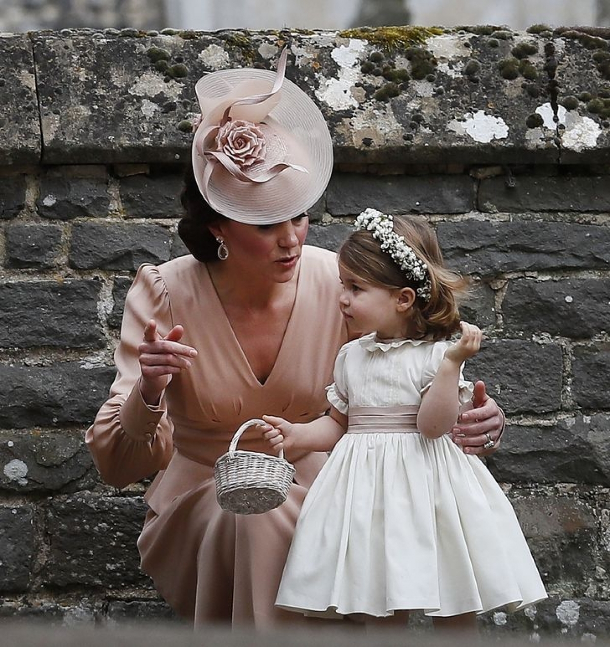 Trong đám cưới của Pippa Middleton, Nữ công tước đã chọn một chiếc váy màu hồng phấn được phối đồng màu với chiếc thắt lưng Công chúa Charlotte.