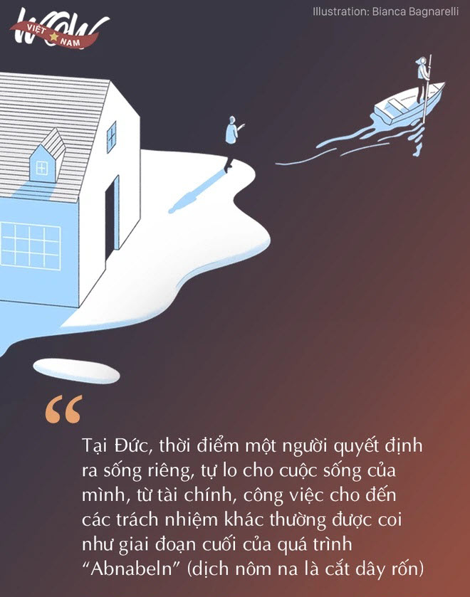 Nếu bạn gặp một người 20 tuổi ở Đức, nhiều khả năng là người đó đã sống riêng. Kể cả nếu như họ có sống chung nhà với bố mẹ, họ cũng có thể thường xuyên làm những gì họ muốn. Nhưng ở Việt Nam thì khác. Anh chàng người Đức đã gặp nhiều người bạn Việt Nam mà tôi muốn mời tới nhà, ở lại qua đêm hoặc đi chơi tối muộn, nhưng không thể, bởi bố mẹ các bạn ấy muốn con cái có mặt ở nhà vào một giờ cố định. Ở Đức, điều này chỉ xảy ra với trẻ em 13 hoặc 14 tuổi…