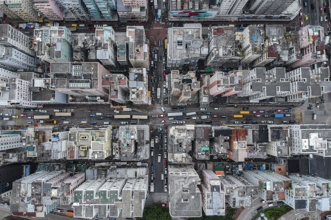 Các ṭa nhà lụp xụp ở các khu đô thị trung tâm của Hồng Kông thường có các “căn hộ quan tài” cho thuê. Ảnh: SCMP