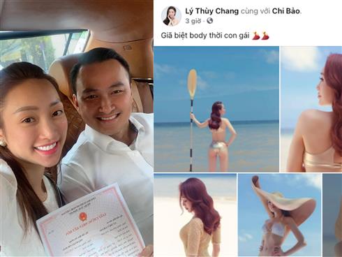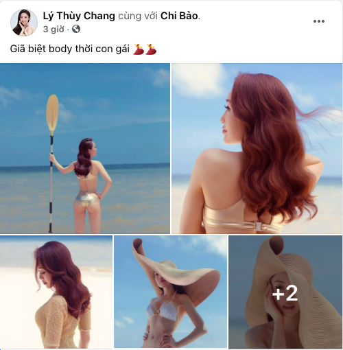 Mới đây, trên trang cá nhân, Lý Thùy Chang - bà xã Chi Bảo đăng tải một bài viết ẩn ý về việc đang mang thai con đầu lòng khi bày tỏ sự tiếc nuối vì phải tạm thời giã biệt vóc dáng "vạn người mê": "Giã biệt body thời con gái". Kèm theo dòng trạng thái, người đẹp tung hàng loạt hình ảnh khoe vóc dáng gợi cảm với bikini khiến người xem không khỏi xuýt xoa.