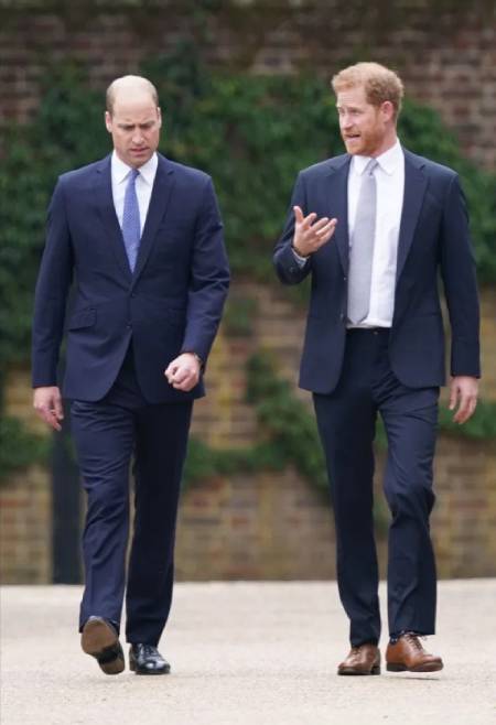 Harry và William trông đều vui vẻ khi gặp mặt nhau trực tiếp lần đầu tiên hồi tuần trước kể từ sau tang lễ của ông nội, Hoàng thân Philip. Cả hai đều mặc vest màu xanh navy và thậm chí bắt chước ngôn ngữ cơ thể của nhau khi trò chuyện với các khách mời bên trong Vườn Sunken, Điện Kensington.