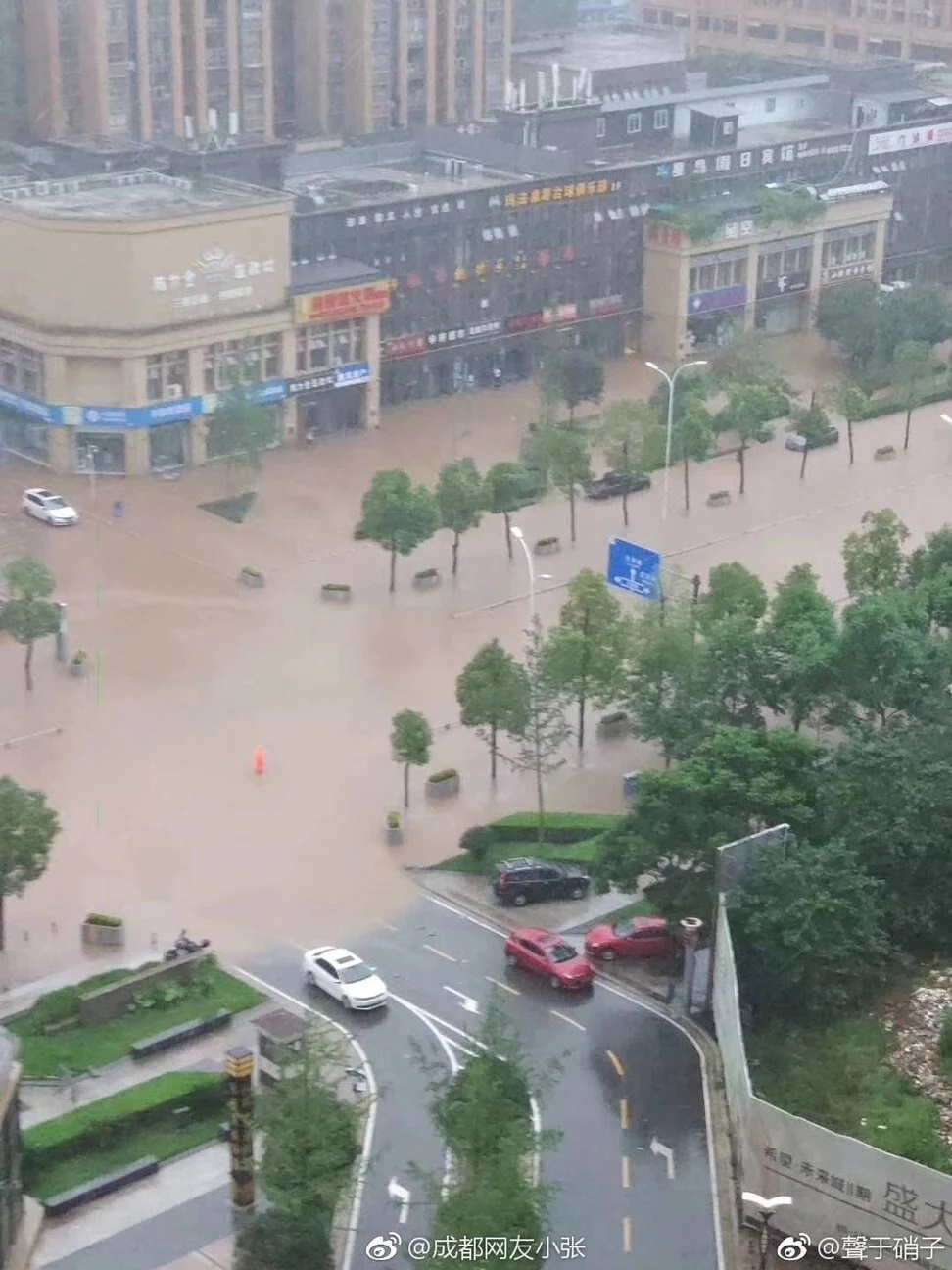 Đường phố ngập trong nước sau mưa lớn. Ảnh: Weibo