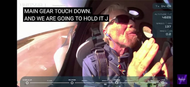 Ông Branson đã trải nghiệm bay ra ngoài không gian. Chuyến bay của ông đã kết thúc một cách tốt đẹp. Tuy nhiên, độ cao ông ra ngoài Trái Đất không quá xa để được coi là ngoài vũ trụ, nên nhiều ngừoi vẫn hoài nghi về cảm giác thực khi ở độ cao này.
