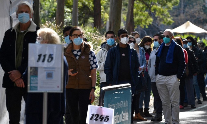 Người dân tại một điểm tiêm chủng ở Sydney hôm 7/7. Ảnh: AFP.