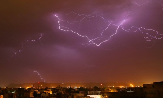 Các vết sét trên bầu trời Jaipur, Ấn Độ, hồi tháng 5/2017. Ảnh: NurPhoto.
