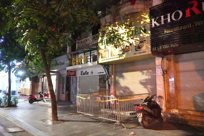 Một quán ăn trên phố Lê Văn Hưu từng là nơi một ca F0 ghé qua ăn uống trong thời gian trở về Hà Nội từ TPHCM đã bị phong tỏa.