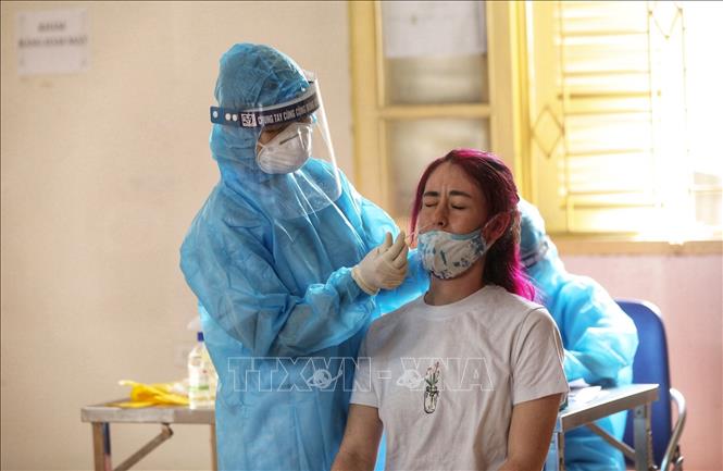 Lấy mẫu xét nghiệm SARS-Co-2 cho người về từ vùng dích. Ảnh: TTXVN.