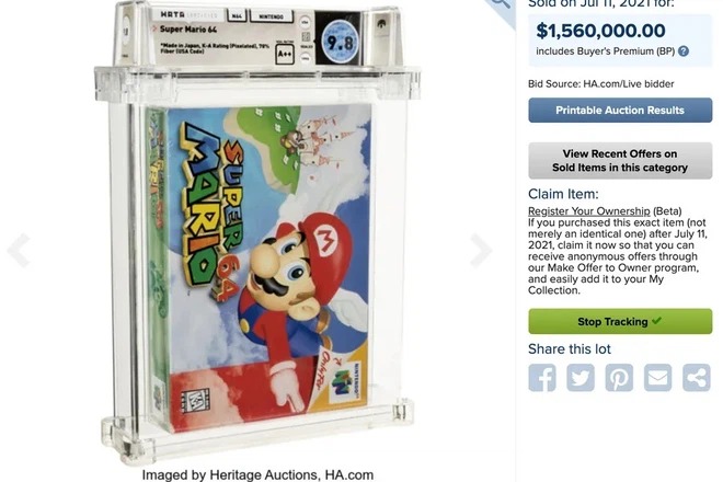 Ngày 11/7, băng Super Mario 64 đã được bán với giá 1.560.000 USD khiến báo giới xôn xao. Giá trị này đã phá kỷ lục băng game đắt nhất thế giới do The Legend of Zelda lập ra vào ngày 9/7 với giá 870.000 USD.