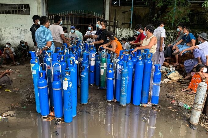 "Tôi đã đợi từ 5h đến 12h trưa nhưng vẫn chưa đến lượt. Oxy giờ quý hơn tiền", Soe Win, cư dân của thành phố Yangon lớn nhất Myanmar, cho biết.