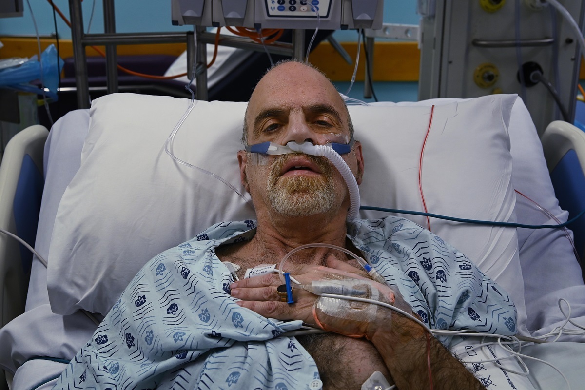 Trong ảnh là bệnh nhân 53 tuổi chỉ có thể thở thông qua sự hỗ trợ của máy móc.