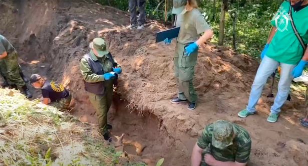Một đoạn video từ Vesti Pskov cho thấy các sĩ quan của ủy ban đang đào những phần còn lại trong ngôi mộ.