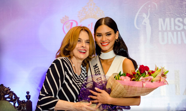Stella Marquez chụp ảnh cùng Hoa hậu Hoàn vũ Pia Wurtzbach. (Ảnh: GT)