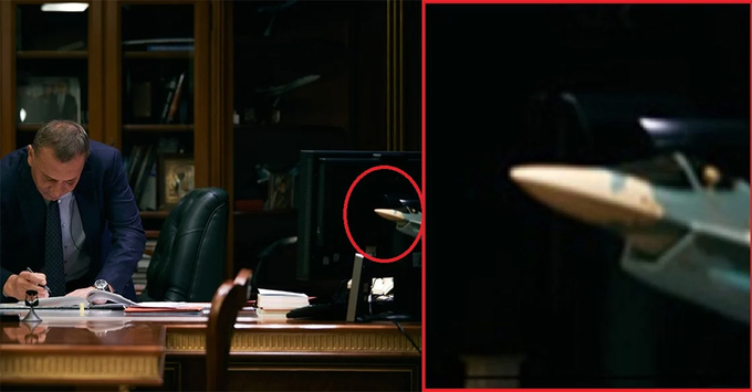 Mô hình tiêm kích chưa xác định với thiết kế lai giữa Su-57 và nguyên mẫu X-32 tại văn phòng Phó thủ tướng Nga Yuri Borisov. Ảnh: RBC.