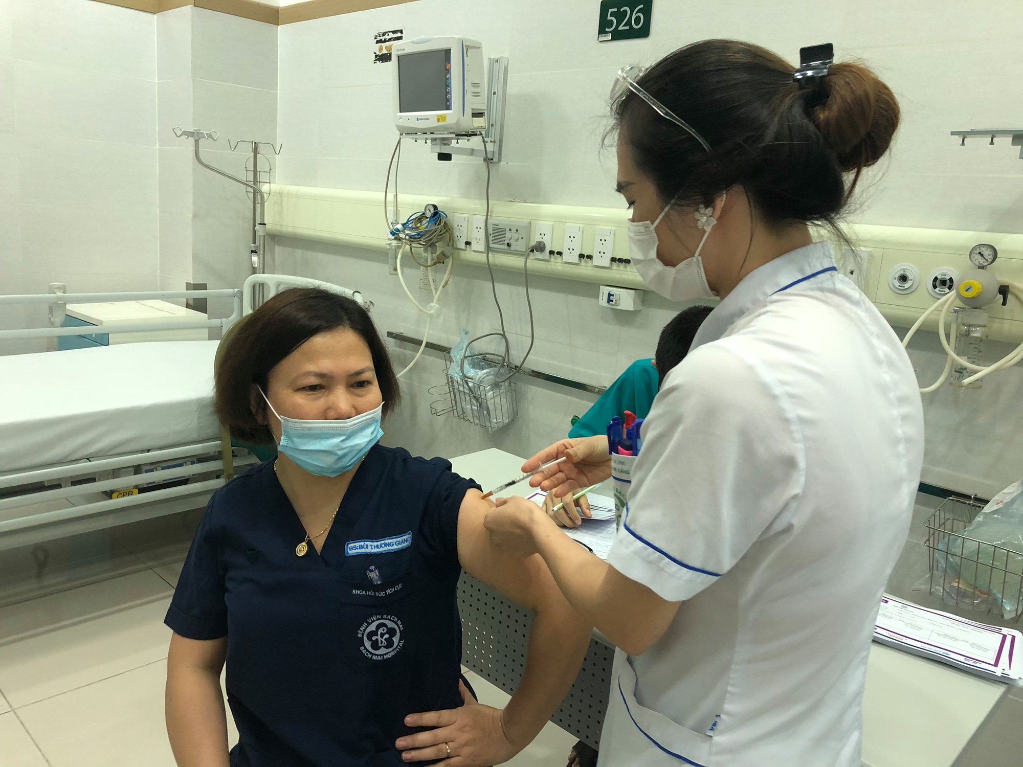 Tiêm vắc xin Covid-19 tại Bệnh viện Bạch Mai. Ảnh BVCC