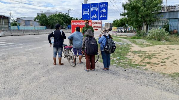 Trời thì nắng nóng. Bốn người trong một gia đình, đèo nhau trên hai chiếc xe đạp đến chốt kiểm soát Chung Mỹ. Khi dừng để khai báo y tế, mọi người tại chốt hỏi thăm mới biết đây là một gia đình đang trên đường từ Đồng Nai về quê ở Nghi Lộc, Nghệ An bằng xe đạp.