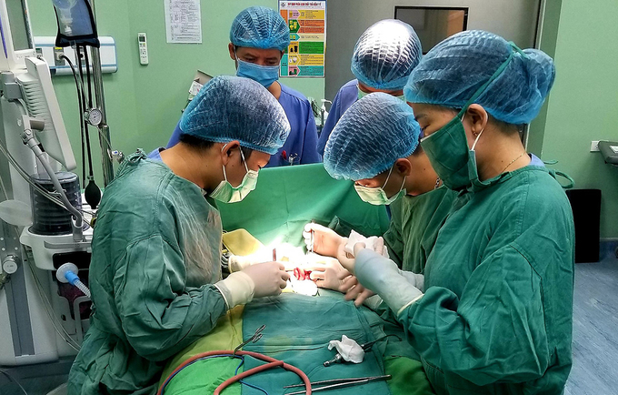 Ca mổ lấy thai nhi diễn ra an toàn. Bác sĩ lập tức giữ thân nhiệt, vô trùng phần ruột sa ra ngoài. Đồng thời sử dụng túi đựng vô trùng, khâu hẹp miệng túi, treo cao để tạo áp lực đẩy ruột từ từ vào trong ổ bụng, tăng cường chức năng thành bụng.