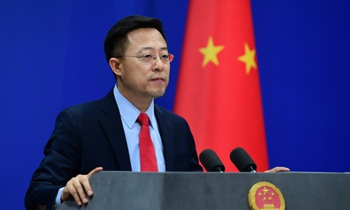 Phát ngôn viên Triệu Lập Kiên tại cuộc họp báo ở Bắc Kinh hôm nay. Ảnh: Global Times.
