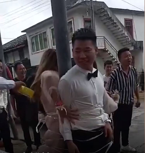 Một hôn lễ đã được diễn ra. Đoạn video ghi lại sự việc chú rể bị hội bạn chơi khăm bằng màn náo hôn theo phong tục địa phương. Khiến dân mạng lắc đầu ngán ngẩm.