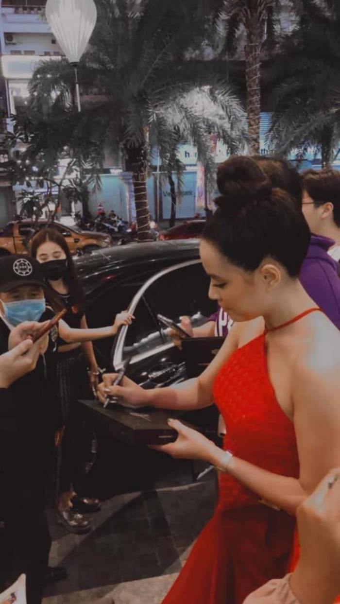 Hoàng Thuỳ Linh từng để lộ bắp tay to trong thiết kế áo yếm, được người hâm mộ chụp lại khi cô cho fan chữ kỹ. Hình ảnh khác với khoảnh khắc xinh đẹp, được chỉnh sửa kỹ càng mà cô đăng trên trang cá nhân.
