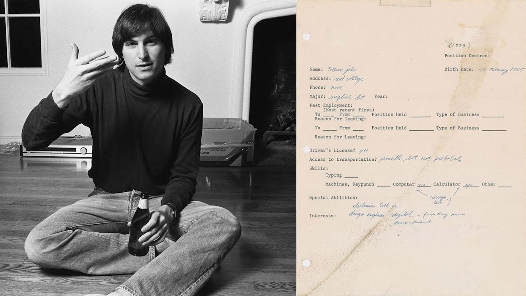 Được biết cố CEO Apple đã viết đơn xin việc này sau khi ông bỏ học tại trường đại học Reed. Theo đó, vào năm 1973, Steve Jobs viết đơn xin gia nhập vào hãng game Atari trong vị trí kỹ thuật viên, đây cũng là nơi ông gặp gỡ Steve Wozniak để dẫn đến việc thành lập ra Apple vào 3 năm sau. Trong lá đơn xin việc của Steve Jobs có một số thông tin thú vị như trong mục địa chỉ, ông điền là đại học Reed, chuyên ngành học là Văn học Anh. Kỹ năng đặc biệt của ông là điện tử công nghệ, kỹ sư thiết kế,…