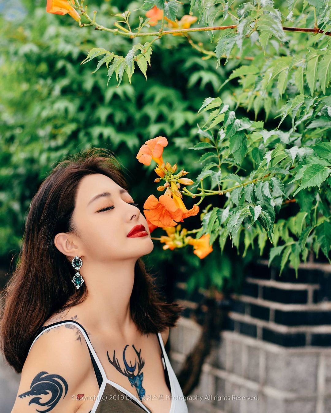 Kim Sul Hwa là người mẫu của tạp chí Maxim, nổi bật với những hình xăm lớn.