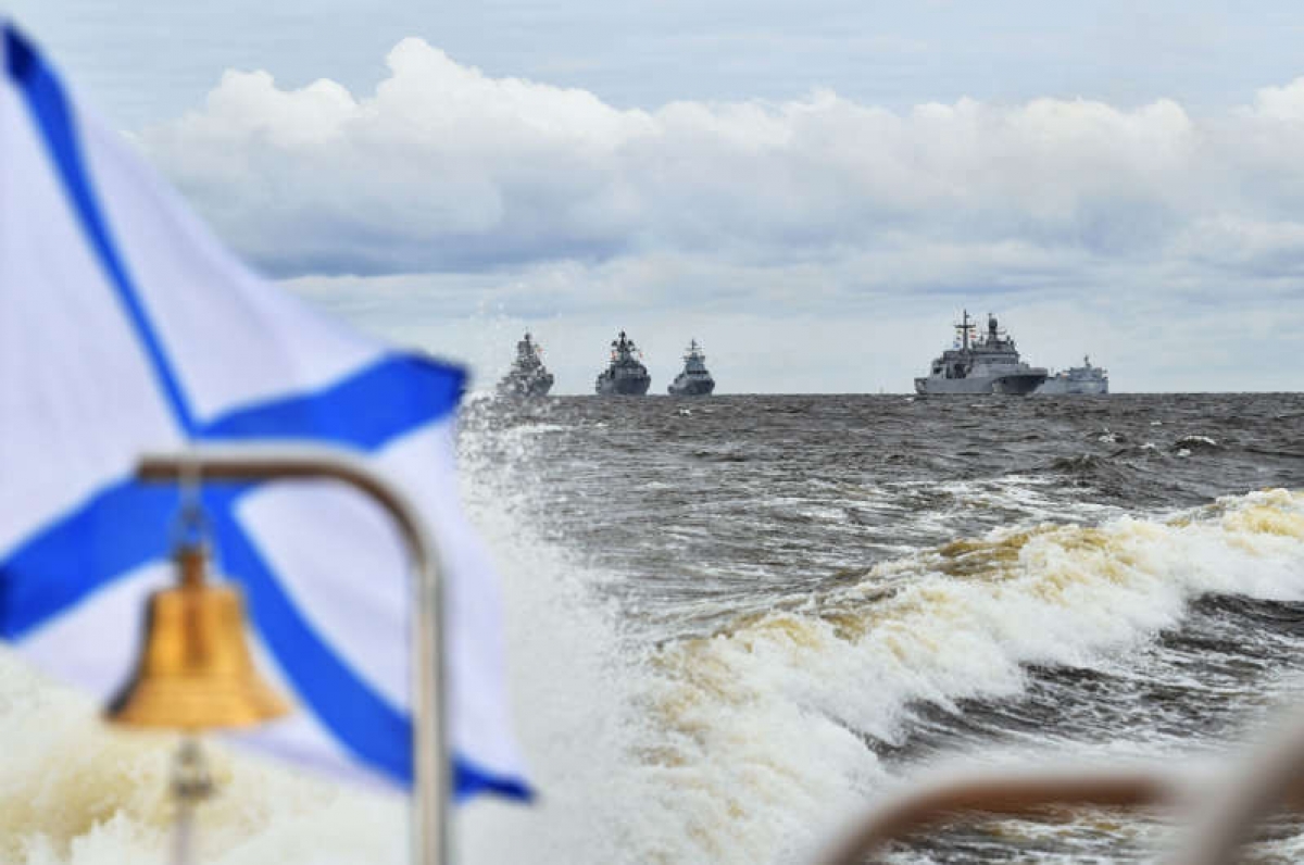 Các tàu chiến Nga trong lễ duyệt binh kỷ niệm Ngày Hải quân ở St Petersburg. Ảnh: Reuters