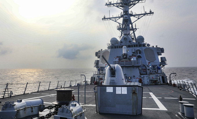 Khu trục hạm USS Benfold đi qua eo biển Đài Loan ngày 28/7. Ảnh: US Navy.